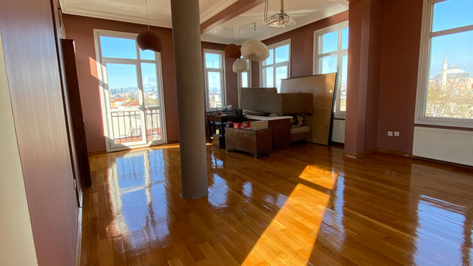 Tuğla kagir binada çelik güçlendirme yaparak alan açtığımız projede endüstriyel stil bir stüdyo daire çözdük.
